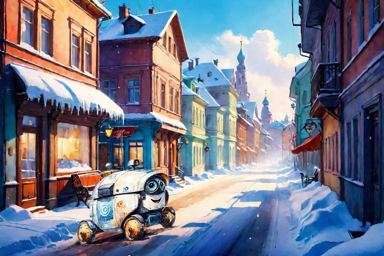 Роботик поблагодарил Электросамокат и покатился к видневшемуся вдали высокому зданию. В окнах цветными огоньками мерцали гирлянды; часто даже были видны наряженные елки. Несмотря на холодную погоду, на одном из окон работал Робот-Мойщик. Он ловко двигался по стеклу, весело насвистывая бодрую мелодию.