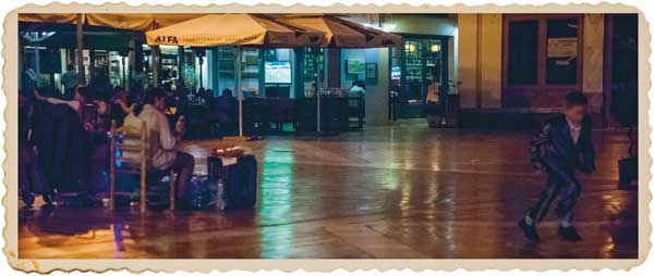 Я проехал несколько деревень, застроенных каменными домами, и притормозил в одной из них. Это был Космас. При виде широкой безжизненной площади мурашки побежали у меня по коже, и я решил ехать дальше. Час или около того спустя я оказался в Триполи. Все еще немного опьяненный красотой Аркадии, я с облегчением обнаружил себя в приятном, правда более приземленном местечке. Я заметил бар на боковой улочке между двумя заброшенными промышленными зданиями. Все стены поблизости были испещрены граффити: жирными линиями, мастерски выполненными, иногда карикатурными рисунками, лозунгами и фразами. Это место подходило моему сердитому беспокойному настроению.
