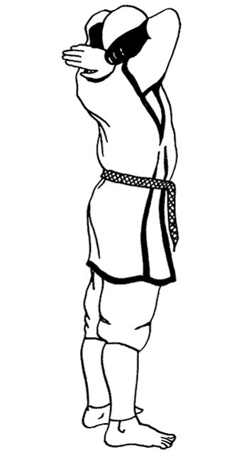 Поднимите руки, заведите их за голову и соедините ладони над согнутой шеей.