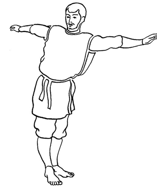 Встаньте на пол, выпрямите спину, пятки соедините, носки разведите в стороны. Сделайте глубокий вдох. Отведите руки назад. Помощник, стоящий у вас за спиной, должен обхватить своими ладонями ваши запястья и плавно поднимать ваши руки вверх. Дышите ровно.