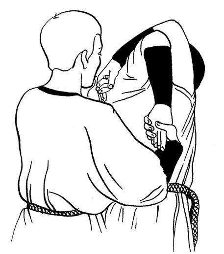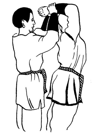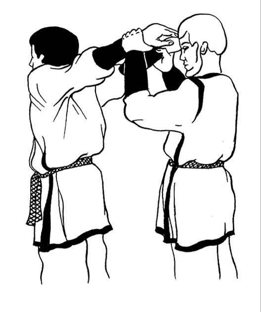 Ваш помощник, стоящий у вас за спиной, должен крепко обхватить своими ладонями ваши запястья.