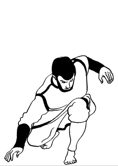 Опуститесь на одно колено, руки согните в локтях и соедините кулаки перед грудью. Сделайте глубокий вдох.