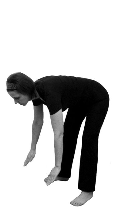 При выполнении упражнений сгибается только поясница – до упора, остальные части тела не изменяют своего положения. Коленные суставы не сгибаются.