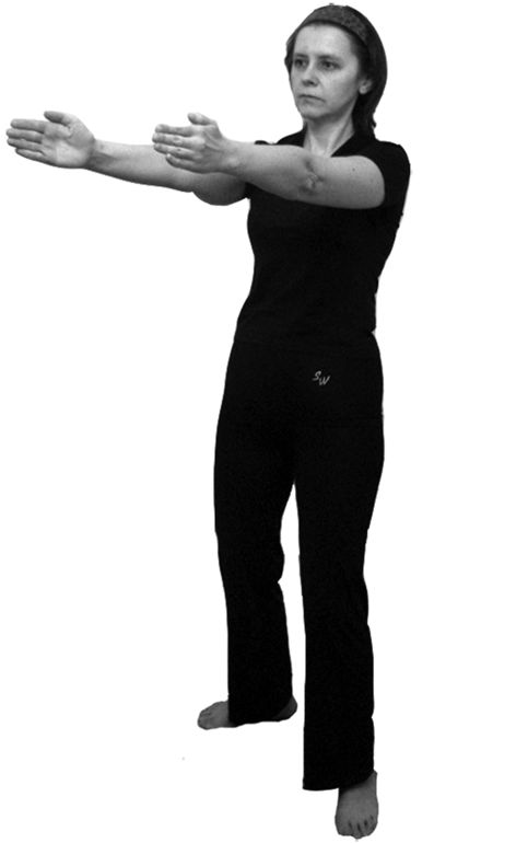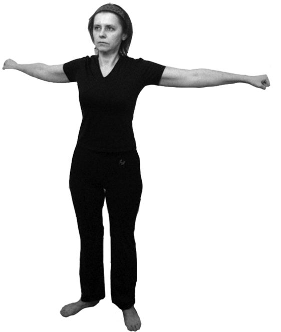 При разведении рук – внутренняя сторона кулаков обращена вниз, при сведении рук – внутренняя сторона кулаков смотрит вверх. Сводить и разводить руки надо с заметным усилием.