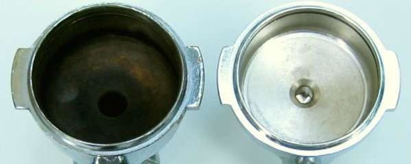 Слепой фильтр – специальная емкость в форме фильтра, которая применяется для чистки групп с помощью специальных чистящих средств. Устанавливается в холдер вместо обычного фильтра. Не имеет отверстий.