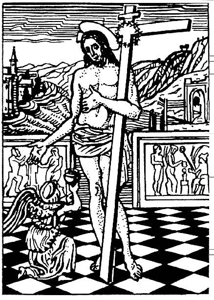 Ангел собирает кровь распятого Христа, которая символизирует силу и энергию «Вод Жизни» (с картины Дж. Беллини «Кровь Спасителя»)