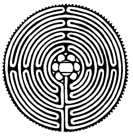 Лабиринт символизирует обряды перехода от обыденного к сакральному; мистерии жизни и смерти; путь жизни через трудности и иллюзии этого мира к центру, просветлению и Небесам; проверку духа; возможность бежать в другой мир (легко войти в этот мир, но, войдя, трудно покинуть его); узел, который нужно развязать; опасность, трудности и судьбу.