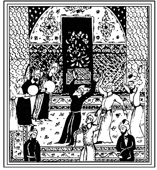 Танец дервишей (для дервишей танец – обычное средство соединения с Богом. Его присутствие и благодать нисходят к танцору через поднятую руку, проникают через его тело и дух и, покинув его, соединяются с землей через руку опущенную)