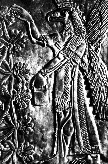 Крылатое божество с головой орла (Нисроч), охраняющее Древо Жизни (рельеф из дворца Ашшурбанапала в Ниневии. Середина VII века до н. э.)
