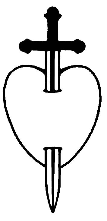 Крест изображен остроконечным. Острые концы его, словно мечи скорби и боли, пронизывают страдающую душу. Ожидание креста проходит через всю жизнь и все служение Иисуса с самого раннего детства. Почтенный Симеон в Храме предсказал, что Иисус будет отвержен и что меч пронзит душу его матери.