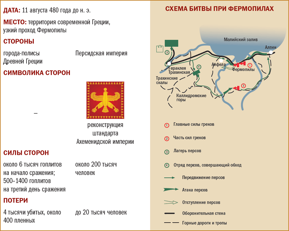 Персидская угроза объединила полисы Древней Греции, включая Афины и Спарту. В результате к Фермопилам отправилось войско, состоявшее из отрядов из разных полисов. У каждого из них был свой главнокомандующий – стратег. Спартанцев возглавил царь Леонид, лично отобравший 300 лучших воинов. Добравшись до ущелья, греки восстановили полуразрушенную каменную баррикаду и укрылись за ней. Персидское войско остановилось у входа в Фермопильский проход с противоположной стороны.