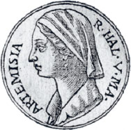 Царица Артемисия. Изображение из книги Гильома Рули «Беглый обзор монет наиболее знаменитых лиц, существовавших с сотворения мира, с кратким описанием их жизни и деяний, заимствованным у классиков». 1553 год