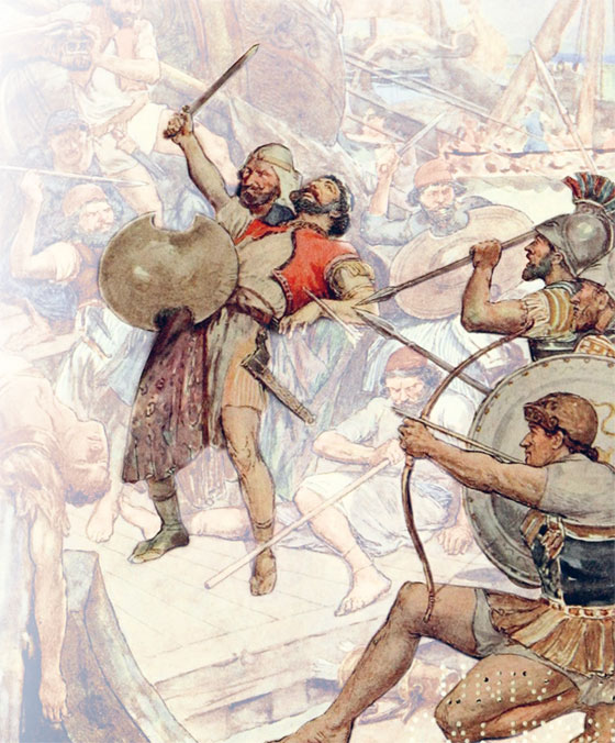 Смерть персидского адмирала во время битвы. Рисунок Вильяма Рейли из книги «Жизнь Плутарха для мальчиков и девочек». 1910 год