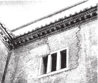 Рим. Двор церкви Сан-Лоренцо фуори ле Мура. Оконтуривание заглубленным швом как метод обозначения нового включения