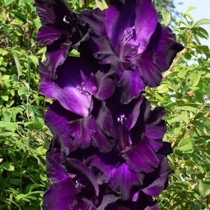 Август – начало цветения гладиолуса Перпл Флора. Соцветия обладают текстурой королевского бархата – столь же дорогой, прочной и шикарной. Цвет глубокий и богатый темно-фиолетовый оттенок демонстрирует чудные переливы, интенсивность которых меняется в зависимости от освещения.