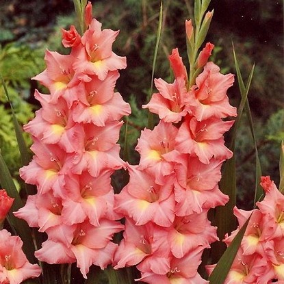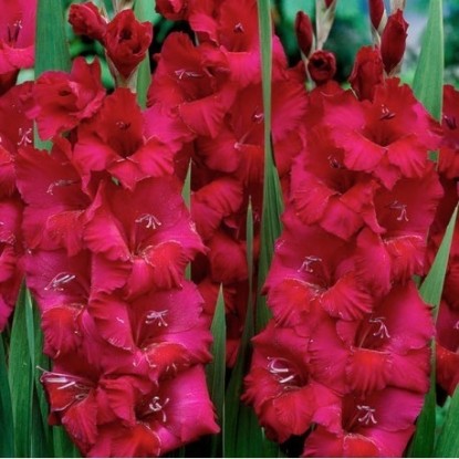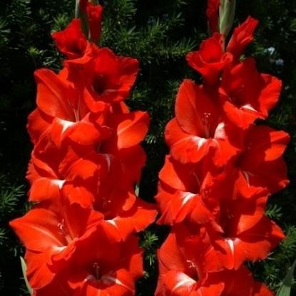 Крупноцветковые гладиолусы очень часто встречаются в садах. Каждый их сорт радует глаз: длина стебля обычно достигает двух метров, цветки треугольной формы, диаметр их – порядка 18 см. В одном соцветии может быть до 30 цветков.