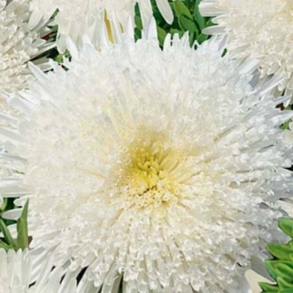 Очень популярное и привлекательное растение из семейства Астровых. Цветет с конца июля по сентябрь. Соцветия густомахровые белые с кремовым центром до 12 см в диаметре. На одном растении формируется до 27 соцветий.