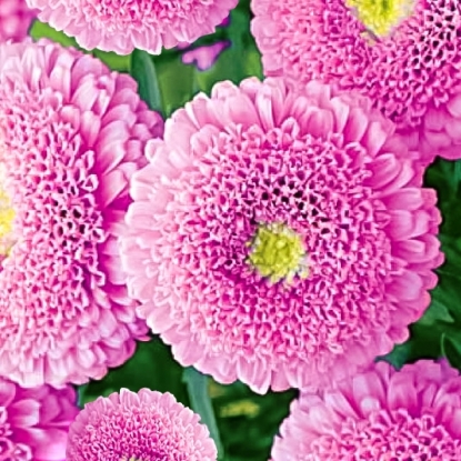 Данный вид включает растение Астра помпонная, отличающееся густым скоплением лепестков. Этот многолетний цветок представляет собой шар правильной формы, образованный небольшими, но многочисленными соцветиями розового цвета. Высота кустика составляет не более 50 см, что делает этот сорт астр крайне эстетичным на вид.
