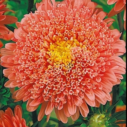 Китайская (Callistephus chinensis) – единственные однолетние или двухлетние астры. В зависимости от сорта кусты достигают высоты 15– 10 сантиметров. Ботанически они принадлежат к разным семействам растений. Цветок махровый, цветет куст очень обильно.
