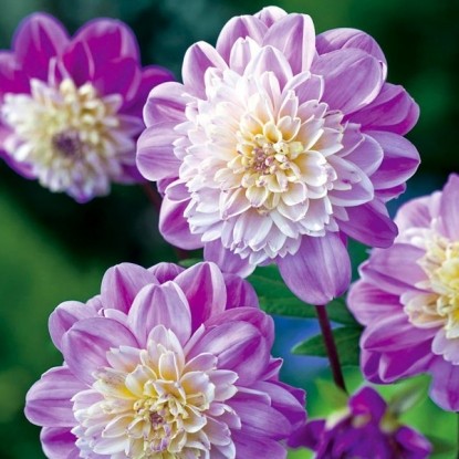 Огромные соцветия даже поздних боковых бутонов – преимущество этого сорта. Каждый миллиметр миндалевидных и слегка волнистых лепестков насыщен чистейшим лавандовым оттенком, искрящимся и сияющим при малейшем прикосновении солнечных лучей. Для придания своему цветению еще большего объема и совершенства георгина Lavender Perfection тщательно растушевала по краю лепестков деликатный молочный полутон, а в середине бутонов сконцентрировала темный лавандовый цвет.