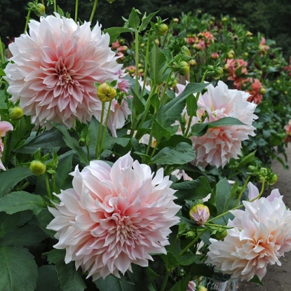В сорте Кофе с молоком кроется особенность нежной окраски цветков – кремово-белая, слегка розоватая. Георгина Кафе О Лейт отличается особенно крупным размером цветка, достигающего 22 см в диаметре. Она отлично подходит для срезки в букеты к 1 сентября.