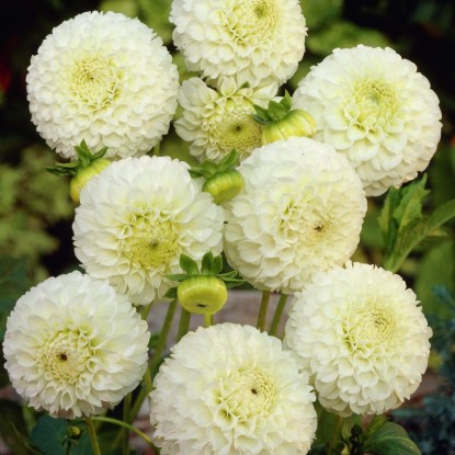 Нежные, словно пушистые помпоны белые шапки цветков этого сорта георгин украсят букет и сад. Они словно светятся изнутри как маленькие солнышки.