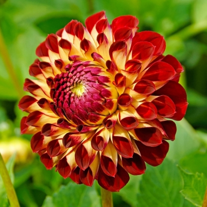 Этот сорт георгинов обладает яркими соцветиями из-за двух цветности лепестков кажущимся многомерным. Долго стоит в срезке, долго цветет.