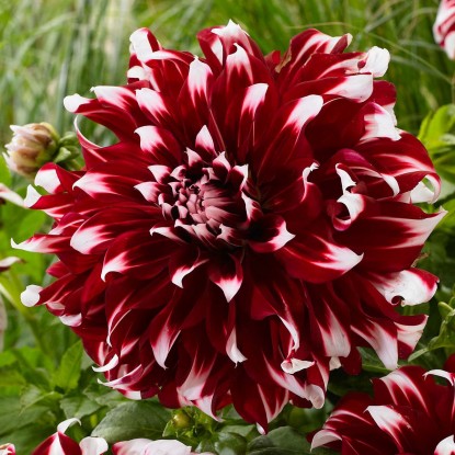 Темно-бордовые лепестки станут еще более насыщенными и сочными на вид, а их белоснежные кончики начнут затейливо изгибаться во все стороны, если подобрать подходящее по тонам окружение на клумбе для этого сорта. Нарочитая неряшливость – основной козырь сорта, делающий его изысканно небрежным. Массивные соцветия могут достигать 20 см в диаметре.