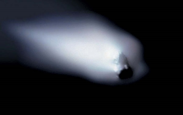 Рис. 78. Ядро кометы Темпель 1 в момент выброса пыли и газа после удара импактного зонда в рамках программы Deep Impact. Источник: NASA/JPL–Caltech/UMD
