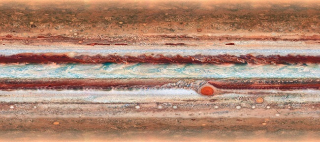 Рис. 80. Карта облаков Юпитера в съемке околоземного космического телескопа Hubble. Источник: NASA, ESA, GSFC/UC Berkeley/JPL–Caltech/A. Simon/M. Wong/G. Orton
