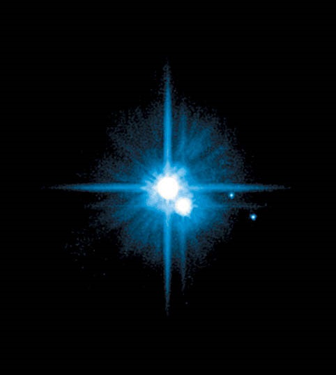 Рис. 87. Плутон и его спутники в съемке околоземного космического телескопа Hubble. Источник: NASA/ ESA/JHU/APL/ SwRI/HST Pluto Companion Search Team/H. Weaver/ A. Stern