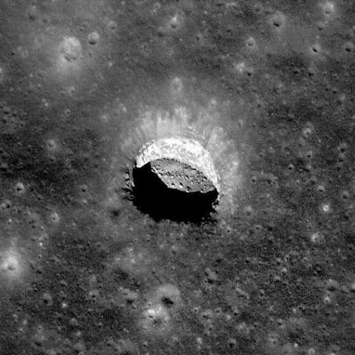 Рис. 94. Провал лунного грунта в Море Спокойствия. Съемка спутника LRO. Источник: NASA/GSFC/ Arizona State University