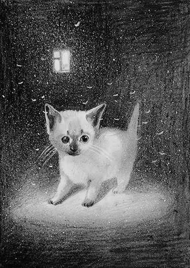 Гремлин – это малыш, который выбрался из страшной жизни. Наш приют известен тем, что мы за один раз можем спасти очень большое количество кошек, вывезти их откуда-то и т. д. Например, бывают люди с психическими расстройствами, которые устраивают у себя в квартирах буквально кошачьи тюрьмы. Подбирают кошек, те голодают, плодятся, болеют, умирают. Там плохо и котам, и людям – им всем нужна помощь. Гремлин из такой квартиры. Когда я туда приехала, первым меня встретил вот этот маленький котенок. Он был жутко истощен, один глаз у него болел. Он усердно мяукал, заполз ко мне на руки и всем своим видом заявлял, что хочет оттуда выбраться. Так и получилось. В итоге мы смогли спасти почти всех кошек. И пока готовился сборник рассказов, малышу Гремлину удалось найти дом!