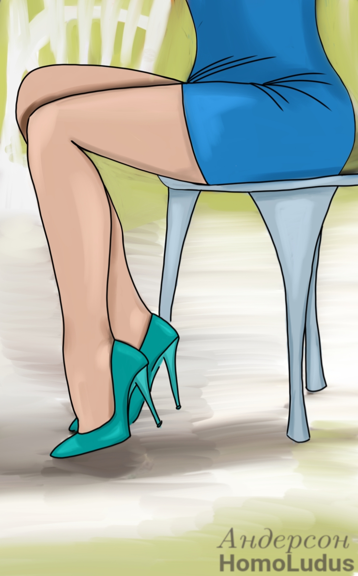 «Ну, как давно… пару минут.» – её правая рука машинально скинула локон волос с плеча и опустилась на стол. Правая нога, на которой была та самая полу-сломанная шпилька, немного приподнялась в пятке и через сантиметр справа от себя снова встала на пол.