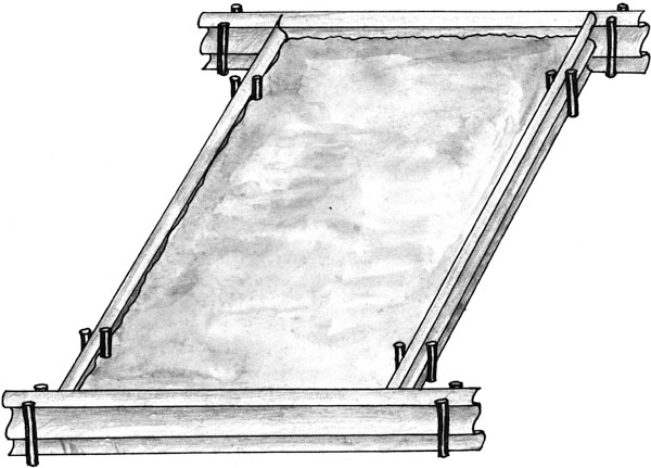 Бока приподнятых грядок могут быть не-окантованными. В этом случае они обязательно должны быть наклонными. Появляющиеся сорняки надо сразу сбривать плоскорезом сверху вниз, пока они не успели хорошо укорениться, а затем дать им полежать сутки. После этого можно использовать в качестве мульчи. Но вы должны знать, что если в это время пройдет дождь, то они сумеют снова укорениться в междурядьях. Чтобы с них не сползала земля и бока грядок не заселяли сорняки, их надо хорошо прихлопнуть лопатой или накрыть черной пленкой (либо полипропиленовой мешковиной). А чтобы укрытие не сползало, проще всего его закрепить шиферными гвоздями или специально сделанными скобами из проволоки, которые после завершения сезона надо собрать и сохранить до следующего года.