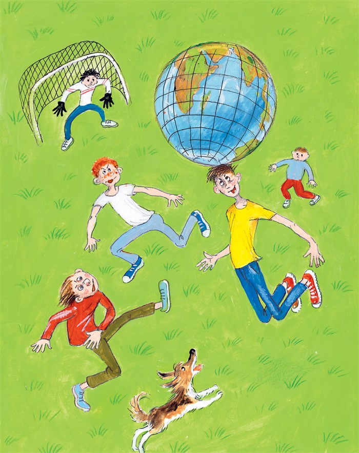 Но Глобус, а тем более старый и размокший от осенних дождей, не приспособлен для игры в футбол. Ещё один удар, и Глобус, как будто издав вздох облегчения, разваливается на части.