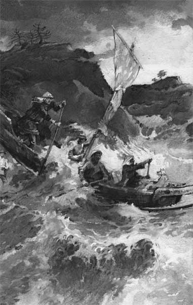 Гребцы налегли на весла, и лодки пошли быстрее. Через полчаса ветер слегка пахнул в лицо, нос лодки начал хлюпать по воде, и тотчас по сторонам стали подниматься волны. Встречный ветер начал крепчать, и грести становилось труднее. Вскоре волны украсились белыми гребнями и начали захлестывать лодку. Вот и мыс Успения. Еще двести шагов – и мы в безопасности. Люди употребляли все усилия, чтобы скорее пройти это небольшое расстояние. Отбойные волны от берега и волны, идущие с моря, сталкивались и образовывали толчею.