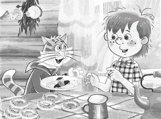 – А что Матроскину в подарок привезти? – спрашивает мама. – Я ему нарядный передник вышила.