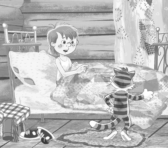 Утром раньше всех проснулся «Матраскин». Он встал в хорошем настроении. И стал думать: а почему он такой радостный?