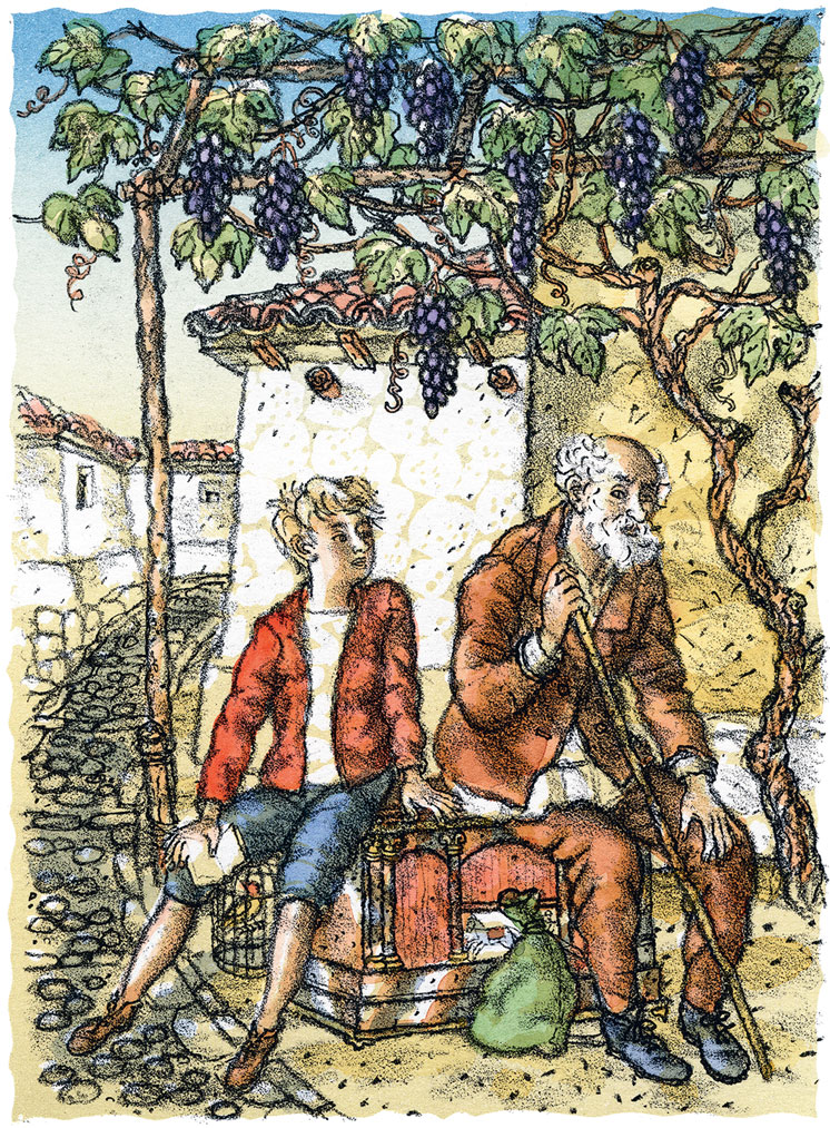 Не торопясь, медленно, в молчании, как едят настоящие труженики, принялись трое за свой скромный обед. Слышно было только, как жевали три пары челюстей. Арто ел свою долю в сторонке, растянувшись на животе и положив на хлеб обе передние лапы. Дедушка и Сергей поочередно макали в соль спелые помидоры, из которых тек по их губам и рукам красный, как кровь, сок, и заедали их сыром и хлебом. Насытившись, они напились воды, подставляя под струю источника жестяную кружку. Вода была прозрачная, прекрасная на вкус и такая холодная, что от нее кружка даже запотела снаружи. Дневной жар и длинный путь изморили артистов, которые встали сегодня чуть свет. У дедушки слипались глаза. Сергей зевал и потягивался.