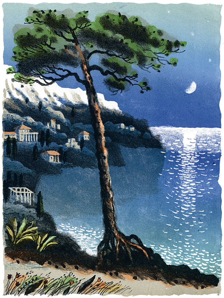 Миновав белую с зеленым куполом, в виде луковицы, мечеть, окруженную молчаливой толпой темных кипарисов, мальчик спустился по тесному кривому переулку на большую дорогу. Для легкости Сергей не взял с собой верхней одежды, оставшись в одном трико. Месяц светил ему в спину, и тень мальчика бежала впереди его черным, странным, укороченным силуэтом. По обоим бокам шоссе притаился темный курчавый кустарник. Какая-то птичка кричала в нем однообразно, через ровные промежутки, тонким, нежным голосом: «Сплю!.. Сплю!..» И казалось, что она покорно сторожит в ночной тишине какую-то печальную тайну и бессильно борется со сном и усталостью и тихо, без надежды, жалуется кому-то: «Сплю, сплю!..» А над темными кустами и над синеватыми шапками дальних лесов возвышался, упираясь своими двумя зубцами в небо, Ай-Петри – такой легкий, резкий, воздушный, как будто он был вырезан из гигантского куска серебряного картона.