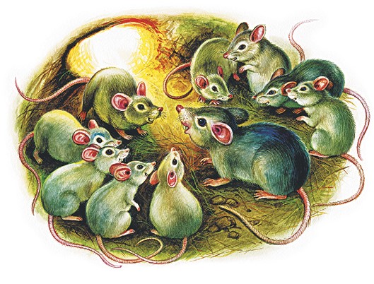 Собралися мышки, подпольные воровки, думушку думают, совет держат: «Как бы нам, мышкам, сухарь в норку протащить?»