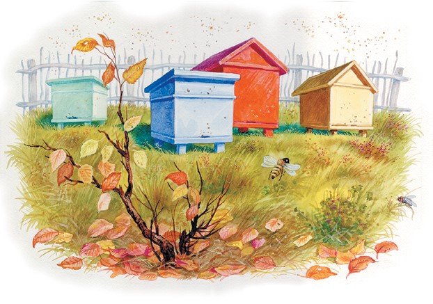 – Зум-зум-зум! Зачем же пропадать, – отвечали мухе весёлые пчёлки. – Мы повеселимся, пока светит солнышко; а как наступит непогода, спрячемся в свой тёплый улей, где у нас за лето много припасено мёду.