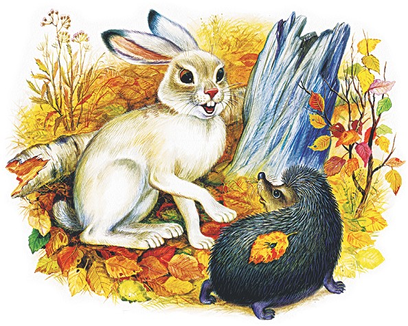 Беленький, гладенький зайчик сказал ежу: