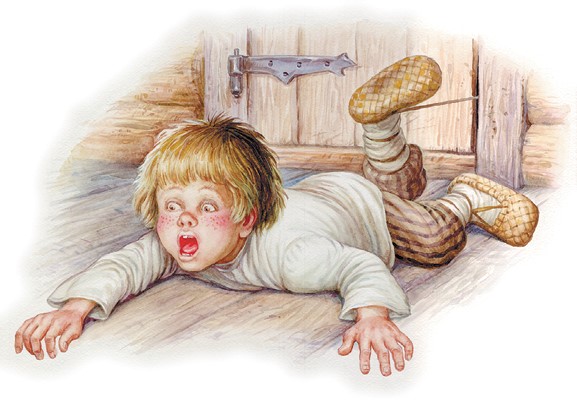 – Ай-ай, батюшки, помогите! Помогите! – завопил Ваня и хотел было вон из избы. На ту беду разулся у него лапоть, и Ванюша прихлопнул дверью оборку от лаптя: растянулся в сенях и вопит благим матом: – Ай, батюшки! Ай, соседушки! Помогите! Отымите! Держит меня домовой!