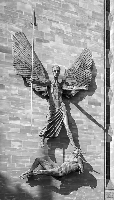 «Победа Святого Михаила над дьяволом» – бронзовая скульптура 1958 г. Работа Джейкоба Эпштейна