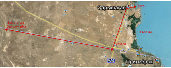 К станции подъехали уже вечером, зашли в вокзал и выяснили, что выбраться из Сары-Шагана можно только одним поездом Приозёрск-Караганда, который недавно ушёл, а следующий будет только больше чем через сутки. Поняв, что спешить больше некуда, решили прогуляться на Балхаш, а то как-то получалось не правильно – побывать на полигоне «Балхаш», а озеро Балхаш не увидеть. Так мы и порешили.