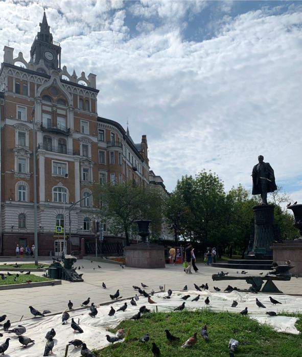 В Москве жарко. Хорошо, что здания высокие и всегда можно найти тень. И холодное пиво.