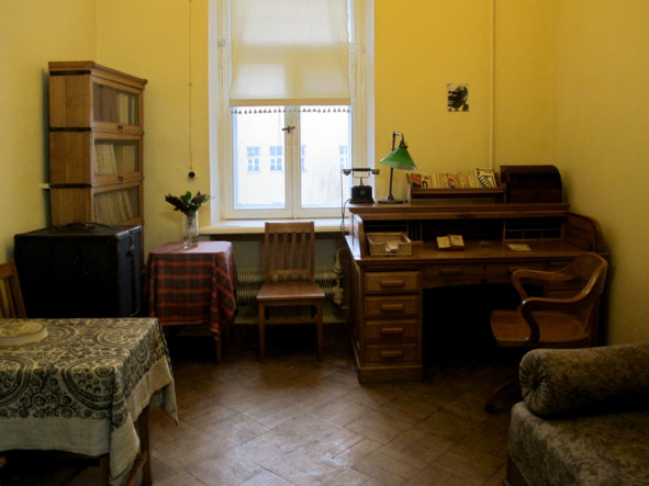 Это квартира, где она жила с 1914 по 1922 годы. Из нее она уехала в Прагу, в этой квартире родилась и умерла ее вторая дочка, тут в ужасные зимы после революции она рубила мебель и жгла ее в печке-буржуйке, установленной в камине.