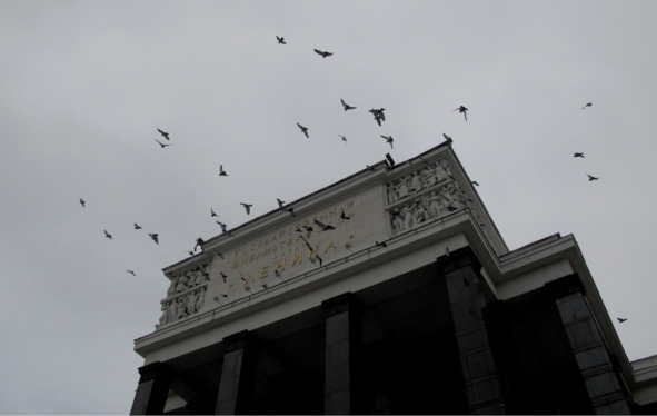 Три дня назад вечером показалось солнце. Облака немного раздвинулись и неяркие лучи осветили Москву. Засверкали купола и кресты церквей, заиграли краски на стенах, снег из серого превратился в золотой. Ушла серость, поглощавшая город все эти дни, улетели вороны из Александровского сада. Где-то тут Маргарита получила волшебный крем Азазелло. А это старое дерево помнит их встречу. А вот дом Пашкова. Там на крыше Воланд со свитой прощался с Москвой. Рядом главный вход в библиотеку им. Ленина, теперь вороны кружатся там. Издали они кажутся черными. Нехорошие эти места. И Александровский сад и дом Пашкова. Вороны летают между ними.
